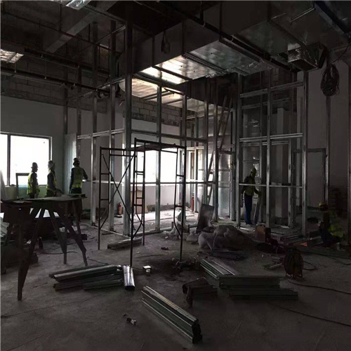 1、龙骨主要部位:沿顶龙骨、沿地龙骨、加强龙骨、竖龙骨、横龙骨应符合设计要求。 2. 轻龙骨配件:支撑卡子、卡子、角撑、连接配件、紧固件、墙龙骨、压条等配件应符合设计要求。 3. 紧固材料:射钉、膨胀螺栓、镀锌自攻钉、木螺钉、胶缝材料应符合设计要求。 4. 填充隔音材料:使用。(10cm厚岩棉)按设计要求